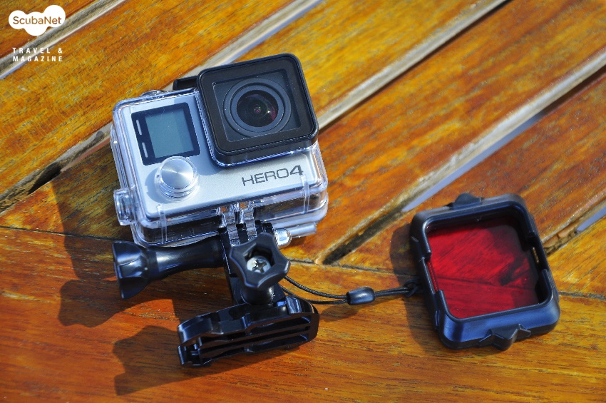 필자가 이번에 촬영에 사용한 고프로 4와 레드필터.