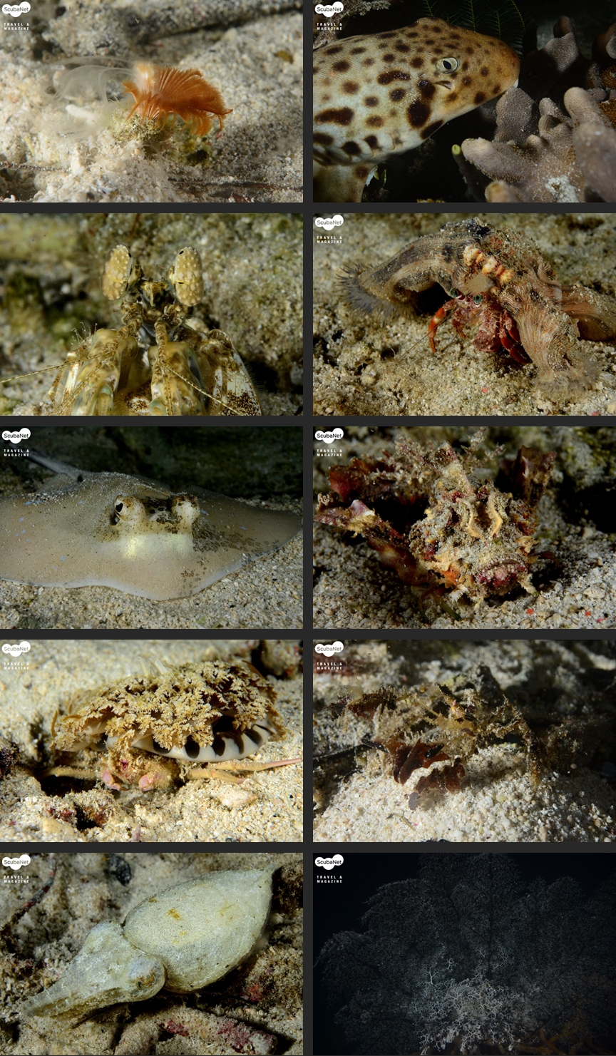 이번 항해 중에 3회의 야간 다이빙이 있었는데 아르보렉 제티(Arborek Jetty), 센도나 펄팜 제티(Cendona Pearl Farm Jettys, Aljui Bay), 멜리사 가든(Melissa’s Garden) 등이었다. 야간 다이빙에서도 우베공 상어와 괭이상어 등의 상어들을 볼 수 있었고, 만티스 새우, 업사이드다운 해파리를 업고 다니는 게, 다양한 물고기들을 만났다. 종다양성이 매우 풍부한 곳이니만큼 도감에서나 보았던 해양생물들을 직접 관찰할 수 있는 좋은 기회가 될 것이다.