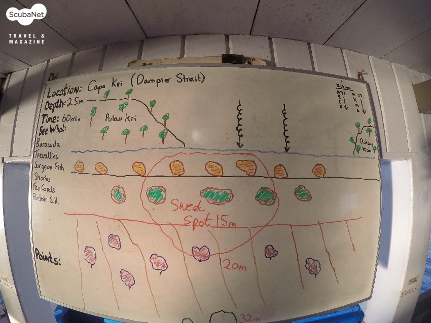 이번에 진행한 트립은 노스 트립으로 소롱을 출항하자 마자 바로 6시간을 항해하여 라자암팟 중부의 다이빙 포인트들이 모여 있는 댐피어 해협의 크리(Kri) 섬 인근에 당도했고, 다음 날부터 인근의 포인트들에서 다이빙을 하며 Arborek, Yanggefo를 거쳐 Kawe 섬의 Eagle Rock까지 갔다가, 다시 Aljui Bay와 Painemu를 거쳐 중부로 돌아와서 크리 섬 인근에서 마지막 다이빙을 즐긴 다음에 소롱으로 돌아오는 일정이었다.