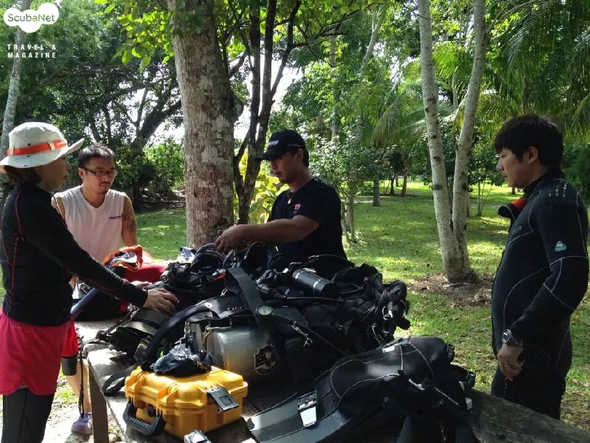 모든 장비는 스킨 장비와 BCD를 제외하고 백업이 필수이며 다이빙 시작 전 팀 멤버와 함께 직접 작동시켜 이상이 없는지 확인한다. 장비가 정상 작동하는지 확인하고 비상 상황에서 서로 도움을 주기 위해서다. 이렇게 기어 매칭(gear matching)을 하고 입수 후 수면에서 버디끼리 호흡기 작동과 롱호스 상태, 잔압, 버블 체크를 하고 하강한다. 모든 다이빙에 예외 없는 의무인 준비 과정으로 처음에는 어색했지만, 교육 중반에는 숨 쉬는 것만큼 자연스럽게 되었다. |