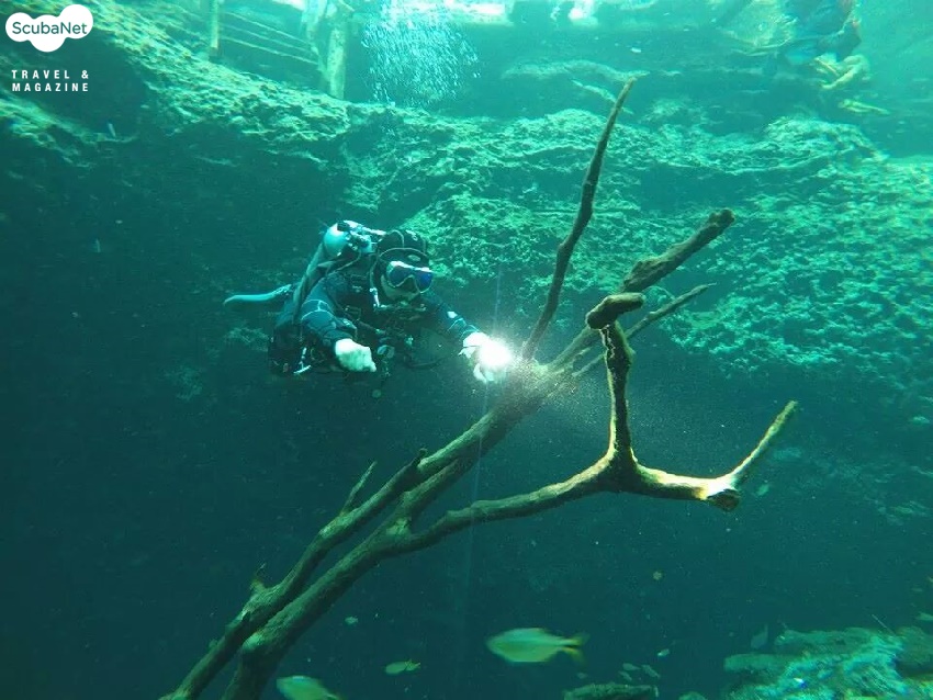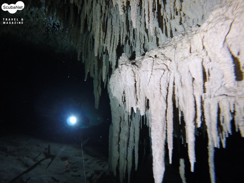 지상 교육을 받고 드디어 첫 다이빙! 세노테(cenote : 웅덩이) 가든 오브 이든(Garden of Eden 필자는 에덴동산이라 불렀다)이었다. 전신을 휘감는 긴장감과 설렘으로 가득했지만 동굴 입구로 들어서니 두려움이 살짝 생겨났다. 그러나 그 두려움은 이내 경이로움으로 이어졌다. 호흡기만 입에 물지 않았으면 석회동굴의 아름다움에 취해 입을 쩍! 벌리고 다녔을 것이다. 첫날이라 다이빙 타임은 짧았지만 정말 강렬한 첫인상이었다.