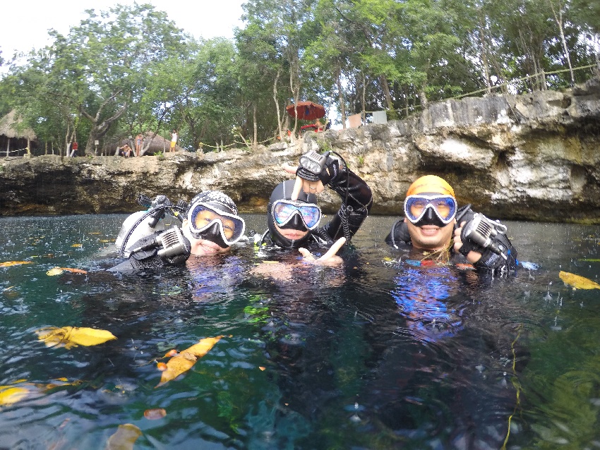 우리 일행을 소개하자면 먼저 전체 일정을 책임진 골드피쉬 스쿠버&트레블 대표 김도형 트레이너, 전 일정 촬영을 담당한 백승균 트레이너, 필리핀 세부 뉴그랑블루 리조트 대표 정용선 트레이너, 그리고 같은 교육생이자 팀 닥터인 김동연 전문의였다. 이런 환상적인 팀이라니!!! 도전을 준비하며 ‘지금까지처럼 직장에서 누군가의 인정을 받고자 했던 행위가 아닌, 오로지 나 자신을 위한 도전의 열매를 성취할 수 있을까? 과연 내가 해낼수 있을까?’하는 의문이 생길 때마다 함께한 팀원들이 내게 믿음을 주었고, 그 신뢰의 마음을 안고 멕시코로 출발하였다. 이야기에 앞서 케이브 다이빙을 할 수 있도록 격려와 도움을 주었던 나의 버디이자 팀 멤버들에게 감사의 인사를 전한다.