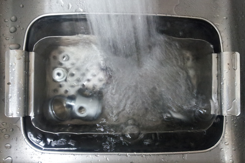 세척제가 용해된 초음파 세척기에서 세척하는 과정