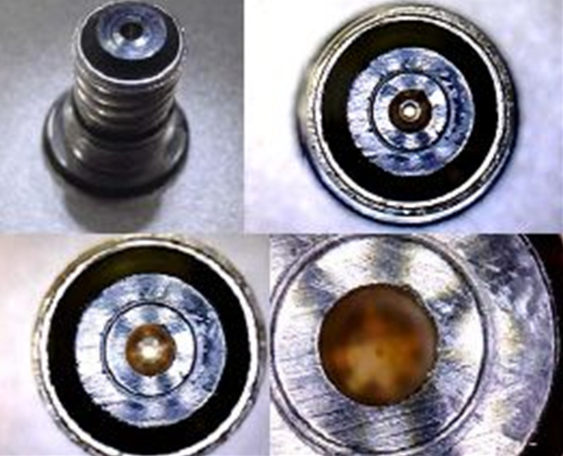 2단계의 오리피스입니다. 확대했을 경우에 흠집이 보입니다. 교환해야 할 부품으로 판단됩니다.