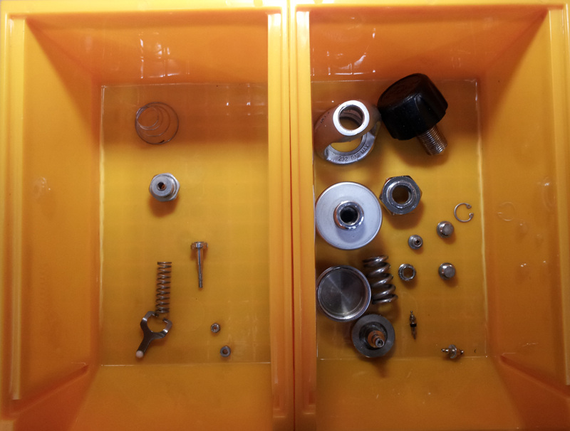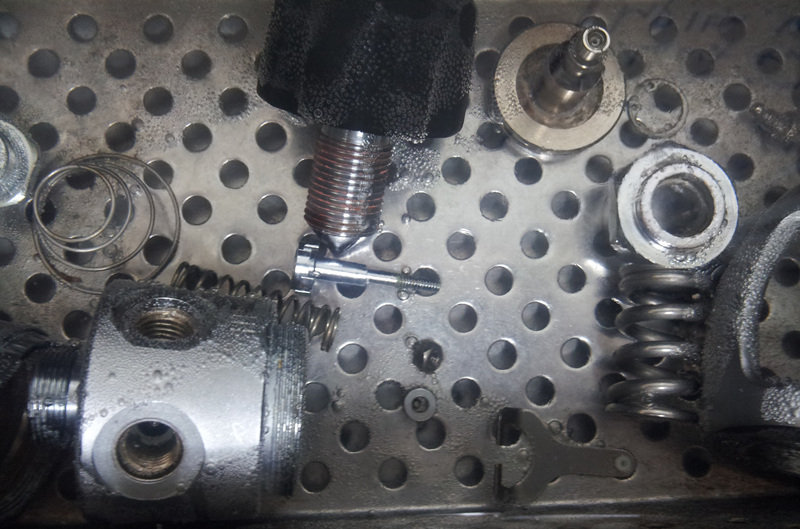 이 과정들의 세부적인 사항은 다음과 같습니다.(참고적으로 사진으로 첨부된 제품은 1단계는 스탠다드 피스톤 타입, 2단계는 언밸런스 포핏으로 구성되어, 부품의 개수가 상대적으로 적습니다. 몇몇 사진은 제외)