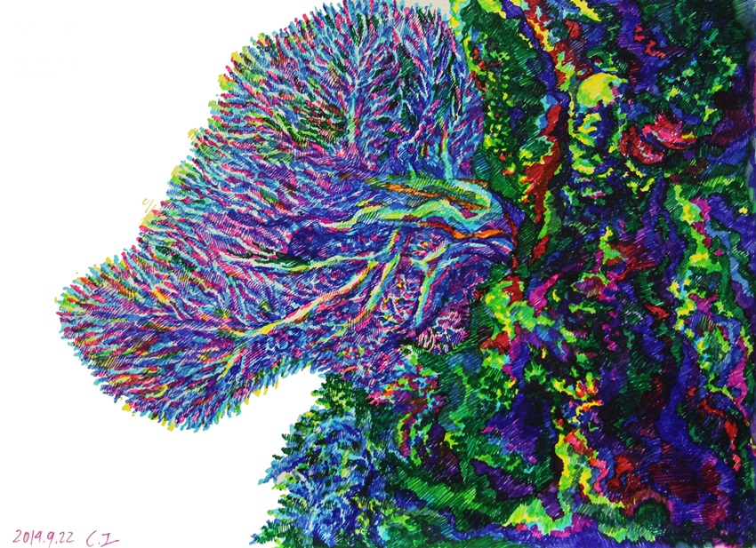 16가지 색상의 펜으로 표현한 아닐라오 카테드랄 포인트의 스폰지 해면