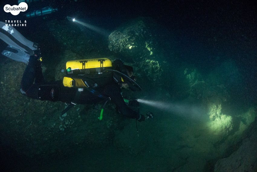 감압정지 중인 텍브로 멤버들텍브로와 함께한 마리곤돈 케이브 다이빙지난 1월 7일, 텍브로, 아띠 다이브, 골드피쉬 스쿠버&트레블이 함께 마리곤돈 케이브에서 다이빙을 하는 역사적인 사건이 있었다. 아띠 다이브 최용진 트레이너, 골드피쉬 김도형 트레이너, 김의범 강사, 텍브로의 권경혁 트레이너, 박준호 트레이너, 양경진 트레이너, 한영호 트레이너, 김만길 강사, 그리고 강사 후보생인 조광호 다이버가 함께한 자리였다. 일단 6명의 트레이너가 모였다는 것부터 흔히 볼 수 없는 광경이었다. 이런 사람들이 한 자리에 모였다 보니 방카 보트에 실린 장비만도 수천만 원어치였고 다양한 방식의 장비가 모였다. 두 대의 재호흡기와 스쿠터, 더블 장비들에 사이드마운트까지 방카 위를 가득 채웠다. 모이는 방식도 독특했는데 일단 마리곤돈 케이브에서 모이자고 약속을 했고 각자 보트를 타고 약속 장소에 모였다. 평소에도 서로 왕래를 할 때 자동차 보다 보트로 다니는 것이 더 편하다고 하니 한국에서는 쉽게 상상할 수 없는 모습이었다.