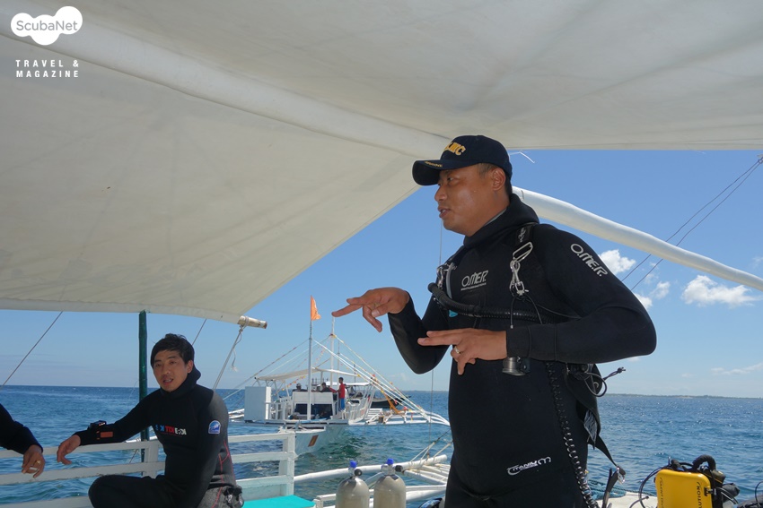 다이빙 전 기념 사진필자는 이번이 막탄 다이빙이 처음이었다. 더구나 케이브라는 익숙하지 않은 환경에서 이런 쟁쟁한 멤버들과 함께 다이빙을 하려니 사실 부담감이 들기도 했다. 하지만 버디를 자청한 권경혁 트레이너의 도움으로 더없이 편안하고 든든한 마음으로 다이빙을 할 수 있었다. 태국 푸켓에서는 이런 우스갯소리가 있다. 푸켓 바다에서 볼 수 있는 가장 큰 생명체가 첫 번째는 고래상어이고 두 번째는 만타레이인데 세 번째는 푸켓 모 다이빙 센터의 모 강사라고. 푸켓에 다녀온 사람들은 그게 누구인지 아마도 쉽게 짐작할 수 있을 것이다. 막탄에서도 비슷한 이야기가 가능할 것 같다. 막탄 바다에서 가장 큰 생명체는 가끔 출몰한다는 고래상어이고 두 번째가 씨홀스 권경혁 트레이너라고. 190cm의 장신에 사이드마운트로 양쪽에 공기탱크를 차고 칼 같은 중성부력으로 떠있는 모습은 다이버인데 왠지 잠수함 같은 느낌이었다. 한 마디로 카리스마가 넘쳤다. 그 동안 유명하고 실력 있는 다이버들과 함께 다이빙을 해본 경험이 여러 차례 있는 필자이지만 물 속에서 이 정도의 압도적인 카리스마를 느낀 건 처음이었다.