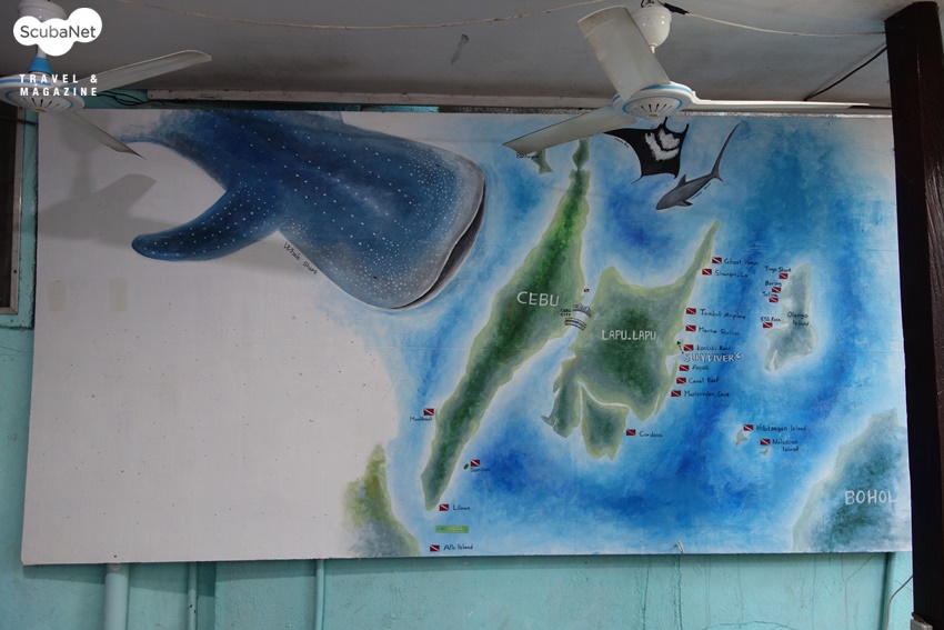 예쁜 그림으로 꾸며진 막탄 다이빙 포인트 맵