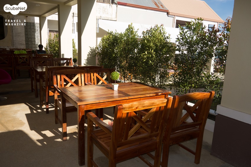다이브센터 앞에 있는 커다란 나무와 휴식 공간