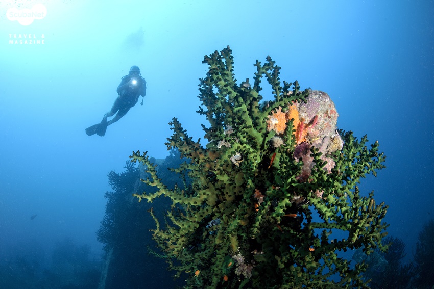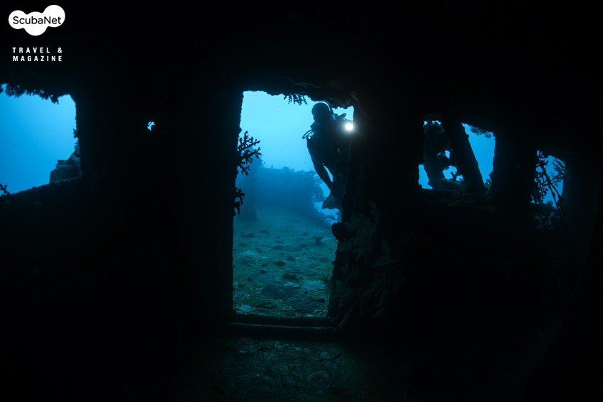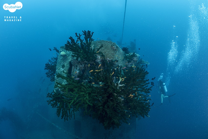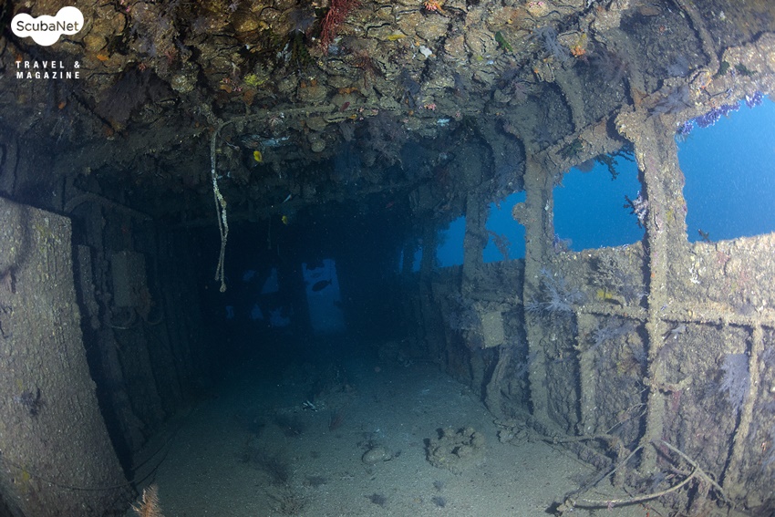 연결된 로프를 따라 내려가서 보이는 선실 위에는 한 무리의 스위트립스들이 가장 먼저 낯선 방문자들을 반겨 주었고, 산호들과 부착 생물들이 풍부하게 자리를 잡고 터를 있었다. 윌하우스 주변을 돌다 30m 지점에 위치한 가장 위쪽 선실의 큰 실내를 잠깐 들여다 보았는데 실내에는 배회 중인 큰 사이즈의 유니콘피쉬들이 있었고, 이미 유리창은 사라지고 골격만 남은 창 사이로 보이는 바다의 푸른 색감과 대조되는 음습한 모습의 실내는 그 동안 보아오던 보통 난파선의 좁은 실내와 달리 넓이가 더욱 부각되어 내가 정말 이 큰 난파선을 탐험 하고 있다는 사실을 더욱 강하게 실감할 수 있게 해 주었다.