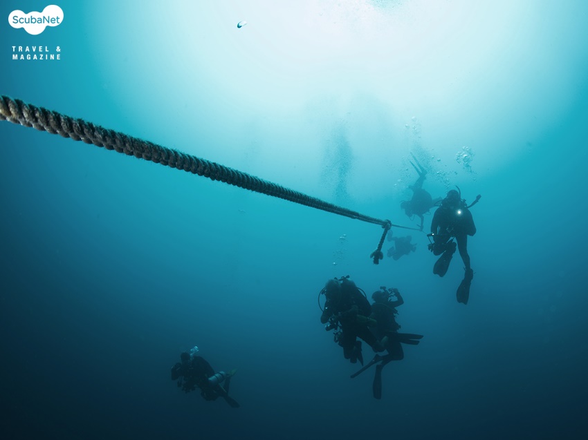 다행이 날씨 조건이 좋아서 우리가 원했던 첫 계획대로 로프를 가장 볼거리가 많을 것이라 예상되는 윌하우스 윗 부분에 연결 할 수 있었다. 다이빙은 3회에 걸쳐서 진행되었는데 큰 이동이 없이 수심 25~30m 근처에서 윌하우스와 선실만 둘러보는 팀과 50m수심의 프로펠러를 구경할 팀 또 반대편 쪽을 다녀올 팀 등으로 총 3 팀으로 나누어서 교대로 진행이 되었다.