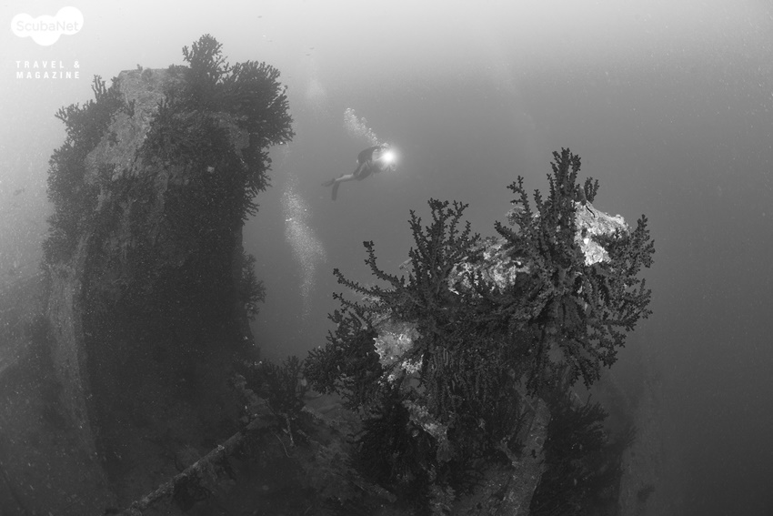 이번 난파선 다이빙에서는 깊은 수심도 문제였지만 또 다른 장벽은 이 난파선의 가장 특징이었던 그 큰 사이즈에 있었다. 아직도 남아 있는 목재 화물을 둘러보고 선수까지 보려면 수심 30m 지점에서 100m정도를 이동해야 하는데 깊은 수심으로 감압의 위험과 조류의 조건을 예상 할 수 없는 상황에서 100m 이동하여 선수까지 갔다가 다시 돌아와서 안전 정지를 하는 계획은 나에겐 부담스러웠다. 그래서 수심 50m의 프로펠러도 선수 쪽도 포기하고 3번의 다이빙을 모두 28m 사이에 윌하우스 쪽만 둘러 보는 것에 만족 할 수밖에 없었다.