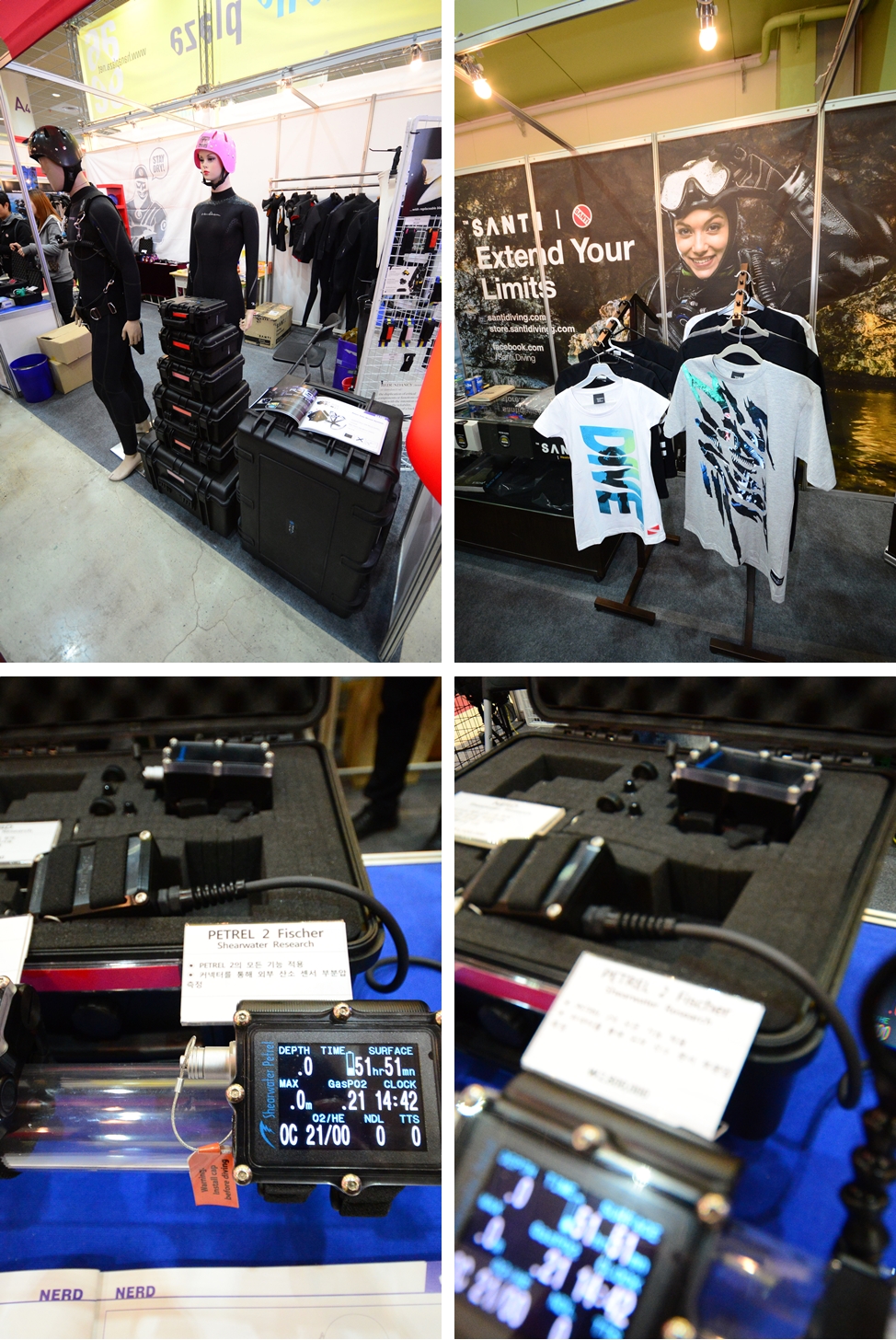 s-tec 브랜드로 하드케이스등을 제작해 전시하고 있으며 산티부스의 멋진 티셔츠와 셔어워터다이브 컴퓨터와 너드도 전시했다.