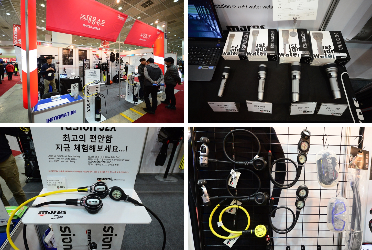 대웅이 주력으로 홍보한 FUSION 52X 레귤레이터가 있다대웅슈트는 마레스 전문수입원으로 신제품 퓨전52X 레귤레이터를 집중적으로 소개했는데 탱크와 레귤레이터 셋트를 비치하고 방문객들이 직접 육상 테스트를 해보도록 했다. 매우 민감하여 프리플로우가 자주 발생했는데 그만큼 호흡이 편하다는 뜻으로 보였다. 그외 신제품으로 EOS 시리즈 라이트, 렌탈장비 세트 등을 홍보했다.