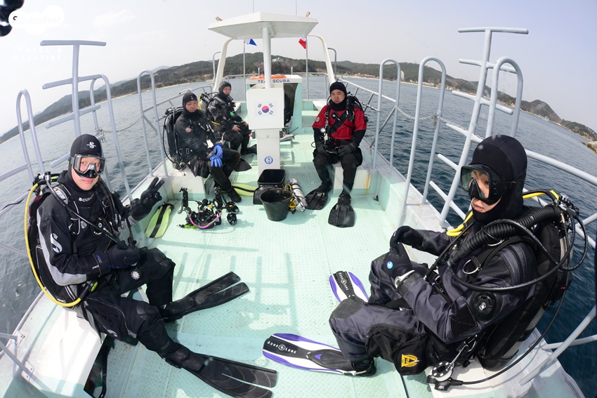 팀스쿠버 전용선으로 다이빙을 나가는 다이버들