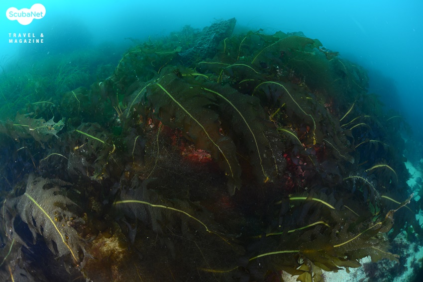 수온이 낮아서 그런지 바닥에 해삼들이 많이 보였다. 대신 물고기들의 모습이 거의 보이지 않았으니 역시 수온의 영향인 듯 했다. 얕은 수심으로 이동하면서 해조류들의 모습을 촬영했는데 바닥에 지천으로 커가고 있는 미역들이 눈길을 끌었고, 바다 속의 꽃 식물 거머리말도 눈에 띠었다. 마지막으로 수면 근처 얕은 수심의 해조류 군락을 촬영하다가 상승하였고, 수면에서 조도의 모습도 카메라에 담아보았다.