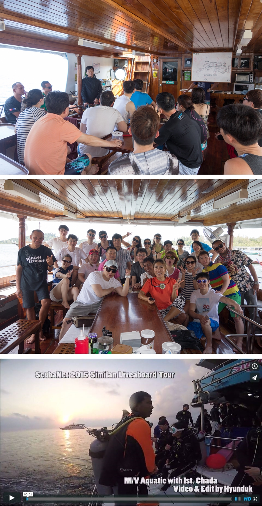 모든 편안함의 이유이번 시밀란 리브어보드는 그동안 필자가 가본 코모도, 라자암팟, 몰디브, 팔라우 리브어보드와는 달리 한국인이 운용하는 것이었다. 푸껫에서 활동하는 이훈재 강사가 시밀란에서의 모든 일정을 조율하고 인솔하였는데 물속과 물 밖의 모든 상황을 잘 알고 또 한국인들이 좋아하는 것이 어떤 것인지를 잘 아는 사람이 있다는 것은 엄청난 차이를 가져왔다. 식사 메뉴와 다이빙 포인트 선정, 또 리브어보드 투어가 끝난 후 푸껫에서의 시간까지 모든 순간을 그 상황과 사람들의 선호에 가장 적합한 것들로 채워주었다. 이 자리를 빌려 이훈재 강사님께 감사의 인사를 전한다.