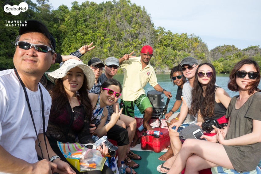 물론 다이빙이 너무 훌륭한 라자암팟이지만 물속 환경만큼이나 물 밖의 풍경도 무척 아름답기에 리브어보드라도 배 위에서 모든 시간을 보낸다면 너무 안타까울 것 같다. 이번 호에서는 라자암팟의 아름다운 수중환경과 환상적인 다이빙에 포커스를 두는 것이 아니라 그곳에서 보내는 시간을 더욱 풍성하고 즐겁게 해줄 재미있는 놀거리에 대해 소개하겠다. 다이빙 포인트에 대한 소개는 스쿠버넷 매거진 2015년 2월호에 이미 자세히 설명되어 있다. 이 글을 끝까지 읽으면 분명 부럽고 라자암팟이 여러분의 다이빙 버킷 리스트에 들어가게 될 것이다. 부럽다면, 내년 구정에 다시 있을 스쿠버넷 라자암팟 리브어보드에 함께 하시길!