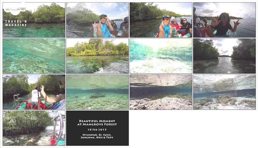 3. 배를 타고 물속의 숲을 누비자, 맹그로브 숲 뱃놀이 맹그로브가 울창한 양겔로 Yangelo 지역은 라자암팟에서도 꼭 가보고 싶은 곳이었다. 가이드 Kris에게 미리 저장해 놓은 맹그로브 사진을 보여주며 이 곳에 가자고 했다. 경험 많은 가이드인 Kris는 사진의 장소가 어디인지 정확히 알았고 풀 챠터 트립이기에 우리가 원하는 대로 경로를 조절할 수 있었다. 사실 맹그로브 숲은 중부 지역보다 남부 Misool 지역이 더 훌륭하다고 한다. 숲이 울창한 것도 있지만 물 속의 연산호와 맹그로브 숲이 어우러져 더 아름다운 풍경을 만든다는 것이다. 어찌됐건 드디어 기대하던 맹그로브 숲에 가는 날이었다. 배는 이미 양겔로 섬 근처에 정박을 했다. 맛있는 아침을 먹고 다음 다이빙까지는 2시간 정도 시간이 남았다. 기대하던 맹그로브 숲 다이빙을 하는 날이라 더욱 기분이 좋았다. 동생들을 불렀다. 리브어보드 4일 차, 이제 제법 친해진 가이드 Kris와 Tedy도 불렀다.