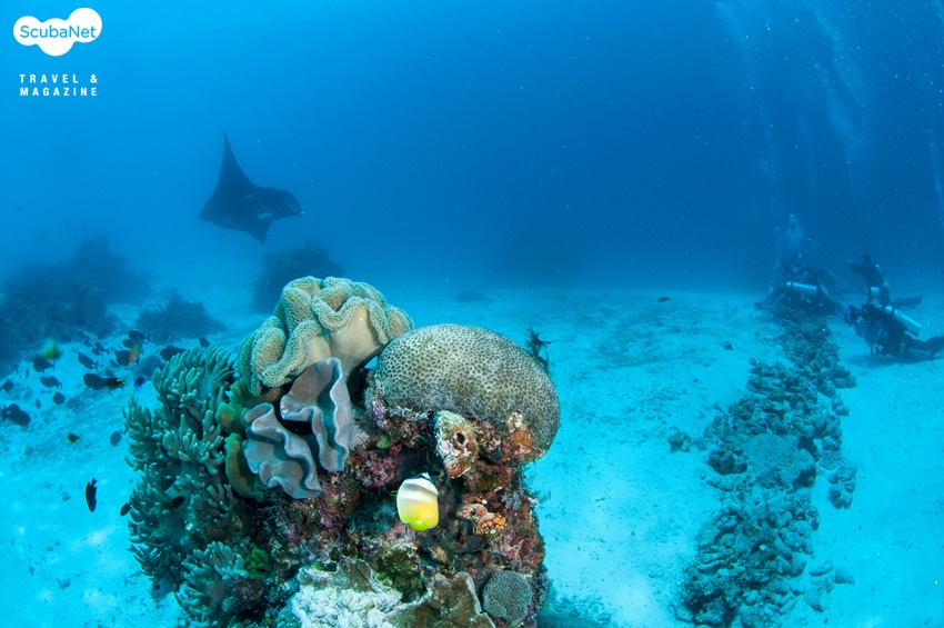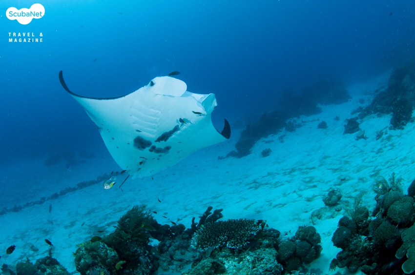 만타 샌디 Manta Sandy 운이 좋은 날이었다. 만타 샌디에는 두 개의 작은 암초로 된 만타 스테이션이 있고 작은 돌로 담을 만들어 놓았다. 만타를 구경하는 다이버들은 그 돌담을 넘으면 안 된다. 돌담에 자리를 잡고 기다리는데 이내 만타가 나타났다.