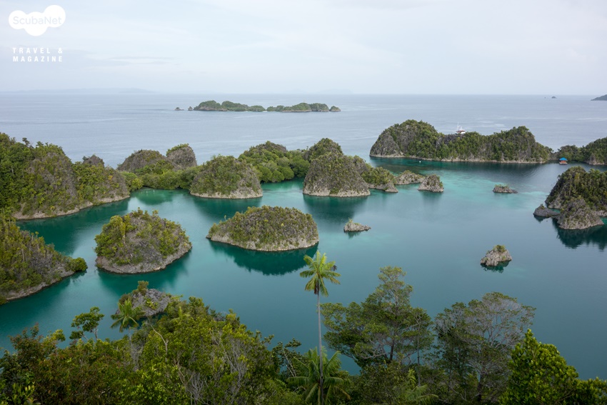 2. 몽글몽글 귀여운 섬을 오르자, 시크릿 베이 하이킹 라자암팟 하면 떠오르는 대표적인 육상 이미지가 있다. 몽글몽글 솟아오른 얕은 섬을 위에서 내려다 보는 사진. 3회 다이빙을 마친 늦은 오후 Penemu 섬의 Secret Bay를 향했다. 시크릿 베이는 위에서 내려다 보면 섬들이 별 모양으로 늘어서 있다고 해서 빈땅 라군 Bintang Lagoon 이라고 한다. 맥주 이름으로 친숙한 빈땅은 인도네시아어로 별을 뜻한다.