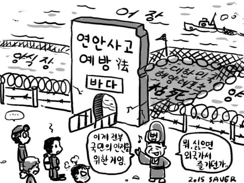 연안사고 예방법은 누구의 작품인가?연안사고 예방법은 2013년 7월 태안에서 공주사대부고 학생들이 사설 해병대 해양캠프 활동 중 5명의 학생들이 사고사 하면서 높아진 국민들의 안전에 대한 염원을 계기로 연안사고 예방을 위해 만들어진 것이다. 당시 해양경찰청(현 해양경비안전본부)에서 법안을 기초하여 경대수 의원 대표발의로 의원입법이 되었는데 2013년 11월 6일 발의되어 법사위에 계류되다가 2014년 4월 16일 세월호 사건이 발생하자 그 해 5월 2일 오전에 법사위, 오후에 본회의에서 졸속으로 통과되었다.