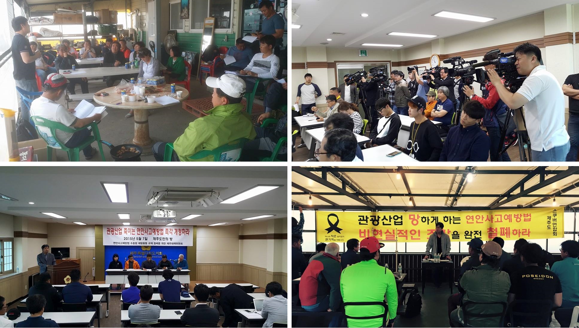 제주도 대책위원회에서도 5월 5일 서귀포에서 결의대회를 가졌으며, 5월 7일에는 제주도의회 도민의 방에서 기자회견을 하며 규제 철폐를 요구했다. 제주도의 경우 그 동안 낚시어선법 등의 문제로 다이빙이 거의 고사 위기에 몰렸으나 제주도특별법의 통과로 낚시어선을 이용한 다이빙이 풀렸는데 다시 연안사고 예방법이 다이빙 산업의 발목을 잡는다고 강하게 반발하고 있다.
