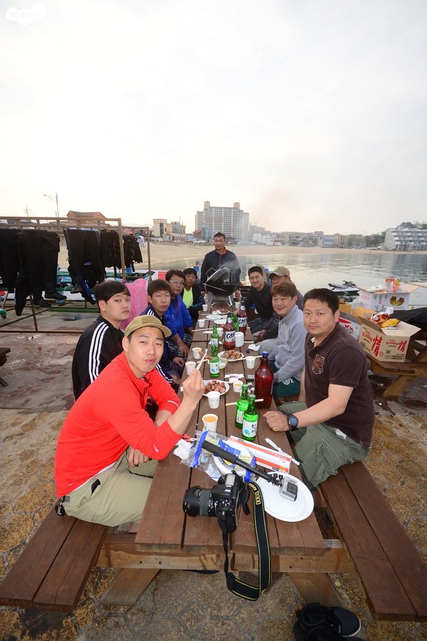 5월의 첫 주말 강원도 고성의 청간정 스쿠버를 찾았다. 지난 4월 11일 선착순으로 50명의 다이버들을 초청하여 개해제를 하며 “편안하고 안전한 다이빙 시스템”이란 슬로건으로 다이버들에게 존재를 알렸다. 또한, 잡지사 기자 및 수중사진가들을 초대하여 “산호공원”이란 멋진 다이빙 포인트를 안내하며 수중사진을 촬영하는 다이버들의 관심도 주목시켜왔던 곳이라 무척 기대가 컸다. 5월 초 황금연휴라 리조트에는 많은 다이버들이 찾았는데 명지대 체육학부의 유중근 교수가 스쿠버 다이빙 수업의 해양실습을 위해 단체로 찾아왔고, 일반 다이버들도 상당수 있어 리조트의 그 많은 숙소들이 동이 날 정도였다. 토요일 오후에 도착하니 다이빙을 일찍 마무리한 다이버들은 넓은 주차장에 자리잡은 리조트의 테이블에 팀 별로 모여서 즐거운 시간을 보내고 있었다.