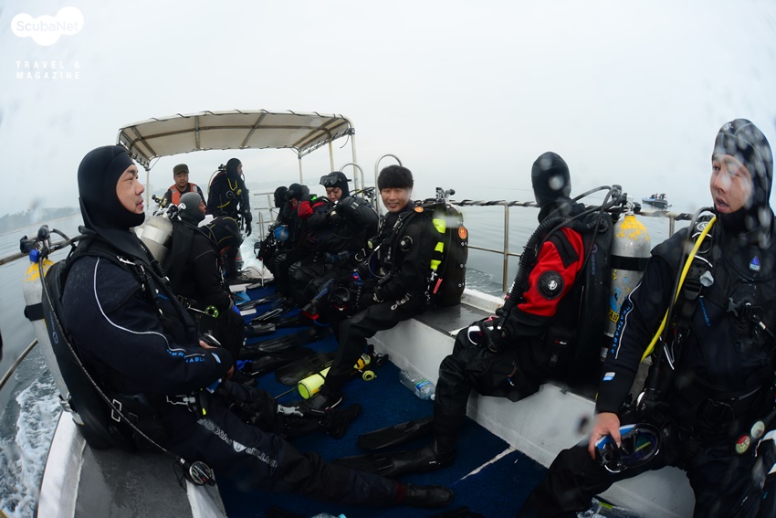 이미 다이빙 시간은 30분을 넘었고 감압을 해야 할 상황이었다. 이성호 트레이너가 손을 봐서 정상적으로 돌아온 감압탱크를 다시 받아서 상승하는데 겨우 감압을 풀 수 있을 정도의 기체량 뿐이었다. 상태가 좋지 않은데 무리해서 다이빙을 한 것이 패착이었다. 천천히 상승하고 감압을 다 풀고 배에 올라오니 총 다이빙시간이 무려 50분이었다. 수온 3℃에 이렇게 오래 다이빙한 것은 처음이었다. 멋진 경치에 수중사진가들을 매료시킬만한 곳이긴 하지만 수심이 깊고, 아직까지는 수온이 너무 찼다.