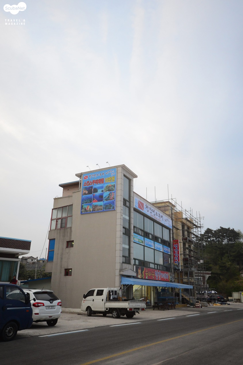 최소한의 동선으로 다이빙이 가능한 시스템리조트는 청간정 아래 암반 지역에 만들어진 넓은 주차장에 자리잡고 있는데 원래는 청간정의 어민들을 위해 만들어진 어촌계의 물양장이지만 어민들이 별로 없는 마을이라 어촌계에서 동의하여 다이빙 리조트로 활용하고 있다.
