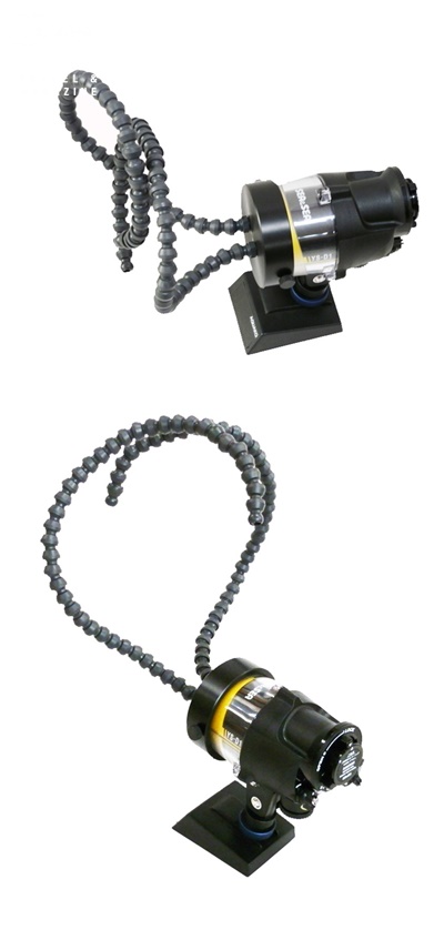 3씨앤씨 YD-D1용으로 Saga에서 만든 광케이블을 이용한 스눗. 스트로브 전면에 고정하는 부위에 광케이블이 내장되어 있는 유연한 암을 부착하여 조사방향을 조절하게 되어 있다. 암은 두개를 부착할 수 있으며, 타겟라이트에 위치를 맞춘 모델과 스트로브에 맞춘 모델이 있으니 확인이 필요하다.(사진: 캠스퀘어)