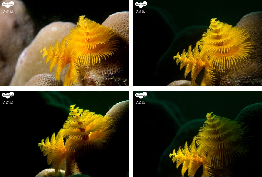 1-4 노란 Christmas Tree Worm을 촬영하면서 다양한 조광으로 촬영하였다.