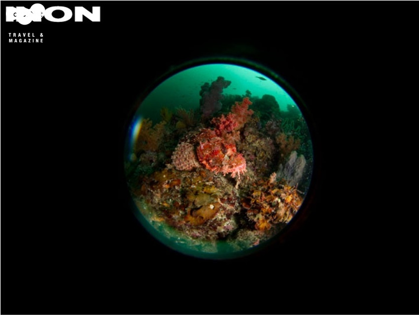 이는 수중에서 줌을 80mm까지 당겼을 때 수중화각이 150도 가 되며 망원으로 뒀을때는 비네팅효과를 보이며 재미있는 사진이 나옵니다.