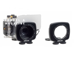 수중확대는 약 0.6배 정도 됩니다.후면 렌즈와 돔 렌즈 사이의 공기층을 주어 수중에서 광각효과를 보도록 설계되었습니다.
