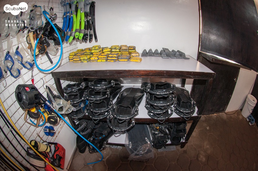 긴 충전 호스를 사용해 무거운 탱크를 충전실까지 가져오지 않고도 충전을 할 수 있다.대부분의 렌탈 장비가 최상의 상태인 좋은 제품이지만 그 중에서도 핀을 보고 놀라지 않을 수 없었다. 렌탈 핀으로 테크니컬 다이버들이 명품 핀으로 꼽는 다이브라이트 XT 핀을 수십 개 구비해 놓은 것이다. 보통 렌탈 장비는 가장 저렴한 제품을 사용하는 것이 일반적이라 수십 개의 다이브라이트 XT 핀은 사뭇 충격적인 모습이었다. 수화물 무게의 압박을 받는 다이버라면 킹콩에 갈 때 핀을 두고 가도 좋을 것 같다. 정말 좋은 핀을, 어쩌면 본인 핀보다 더 좋을지도 모르는 핀을 빌려 쓸 수 있으니 말이다.