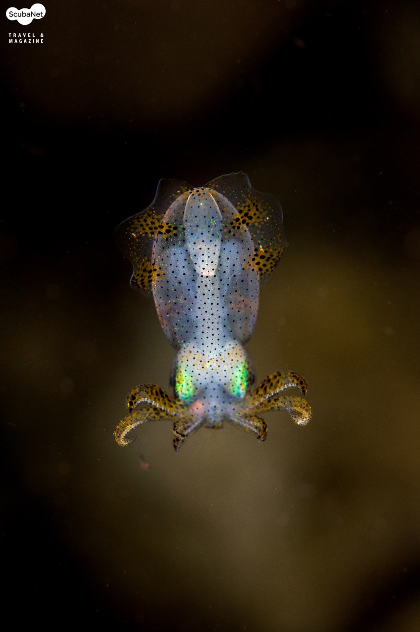 야간 다이빙 중에 만난 새끼 오징어. 세 마리가 같이 있었는데 한 마리 밖에 찍지 못해 아쉬웠다.