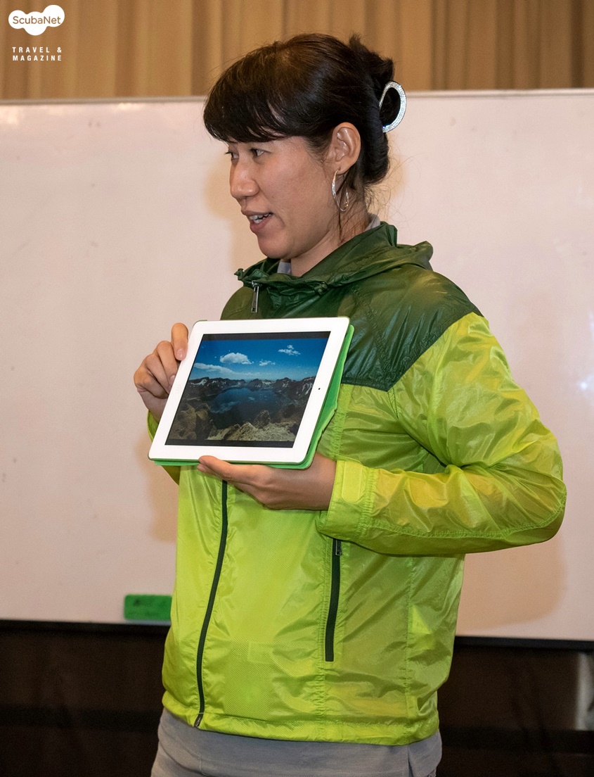 백두산 고도 다이빙에 대한 발표를 하는 소피아