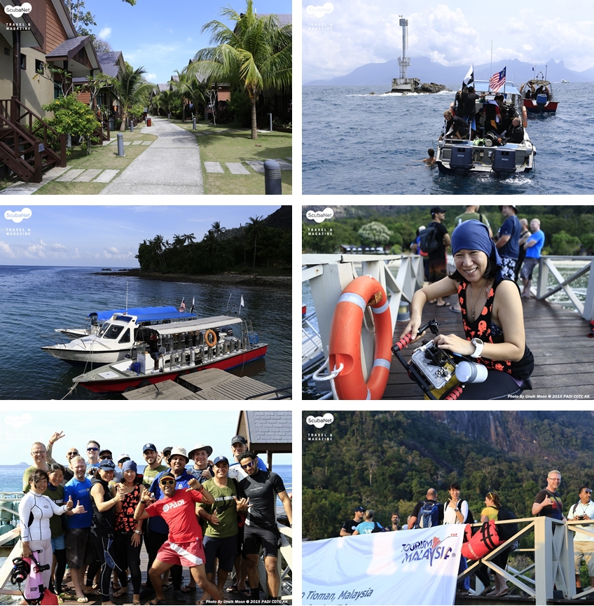 9일간의 코스가 끝난 후, 3월 26일부터 4박 5일 동안 말레이시아 관광청에서 새롭게 코스디렉터가 된 저희를 위해 티오만 섬으로의 팸 투어를 마련해주었습니다. 티오만 섬(Pulau Tioman)은 말레이시아 반도 동쪽 해안에 있는 작은 섬으로 1970년대, 세계에서 가장 아름다운 섬으로 타임지에 선정되기도 했던 곳입니다. 이곳은 가족 혹은 연인들이 휴양을 하기에 좋고, 다양하고 아름다운 산호초 군락에 둘러싸여 있어 스쿠버 다이버들과 스노클러들에게도 아주 각광받는 곳입니다. 또한 아네모네(말미잘) 군락이 아주 넓게 분포되어 있고, 특히나 크라운 아네모네 물고기는 너무 많아서 어떤 다이빙 포인트에서든 흔하게 볼 수 있었습니다. 그 밖에 블랙팁 상어, 갑오징어, 블루스팟 스팅레이, 거북이, 갯민숭달팽이 등 크고 작은 다양한 해양 생물을 한번에 볼 수 있으며, 다이브 사이트 또한 다양해서 스피드 보트로 짧게는 30분, 길게는 1시간 남짓 달리면 대부분의 사이트에서 스쿠버 다이빙을 즐길 수 있습니다.