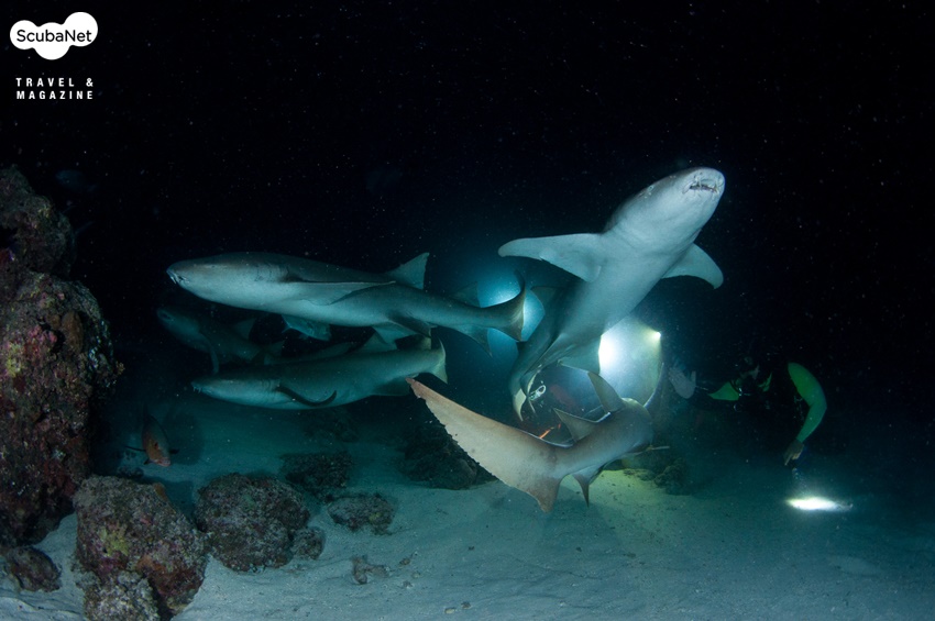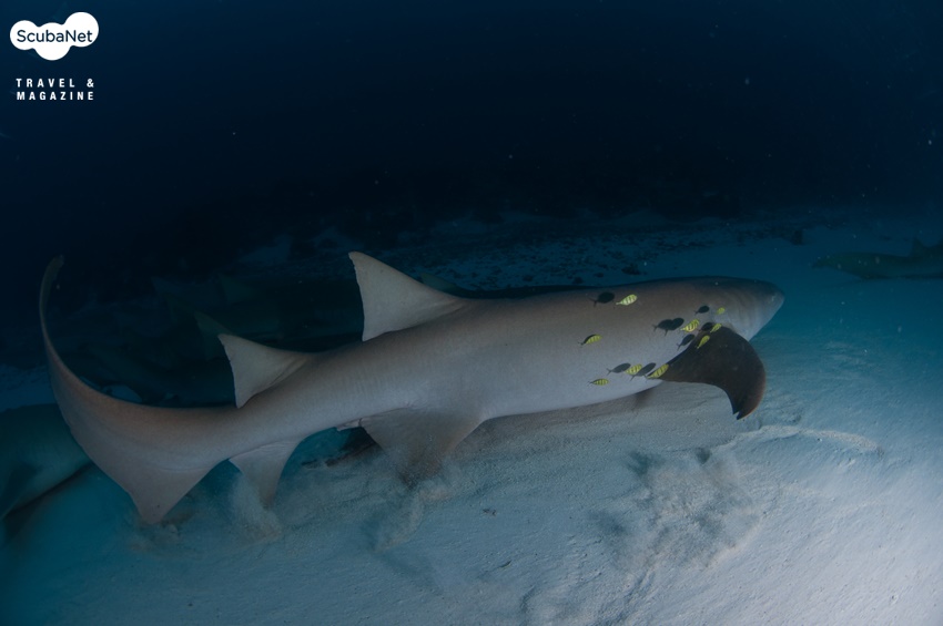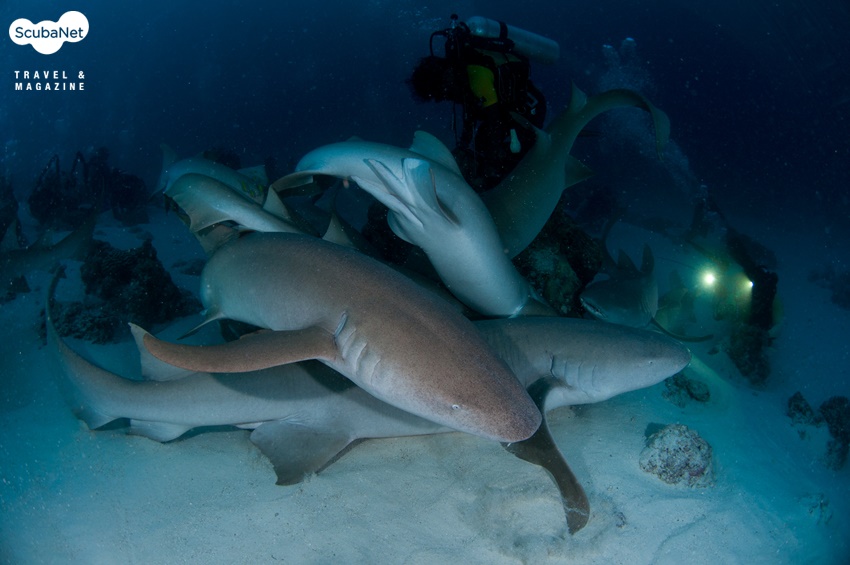 수 십 마리의 너스 상어를 가까이에서 볼 수 있는 알리마타 야간 다이빙