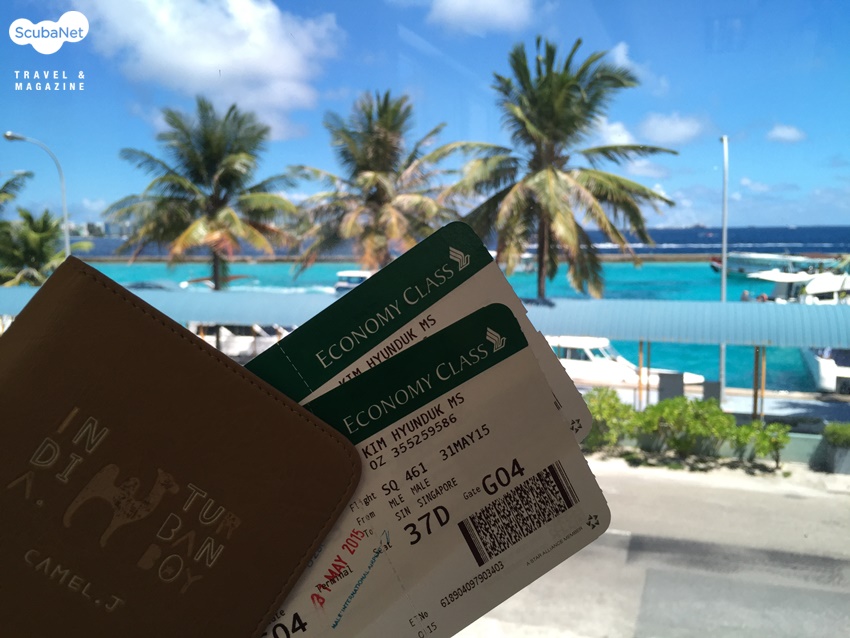 몰디브 가는 방법몰디브까지 비행시간이 길긴 하지만 먼 거리에 비해 이동이 비교적 편리하다. 말레 공항으로만 가면 바로 리브어보드에 승선하게 된다. 몰디브의 말레 공항으로 향하는 항공편은 여러 가지가 있다. 직항이지만 스리랑카 콜롬보에 기항해 주유를 하는 동안 비행기에서 내렸다가 다시 타야 하는 대한항공과 싱가폴을 경유하는 싱가폴항공, 홍콩을 경유하는 케세이 퍼시픽 등을 주로 이용하게 된다.