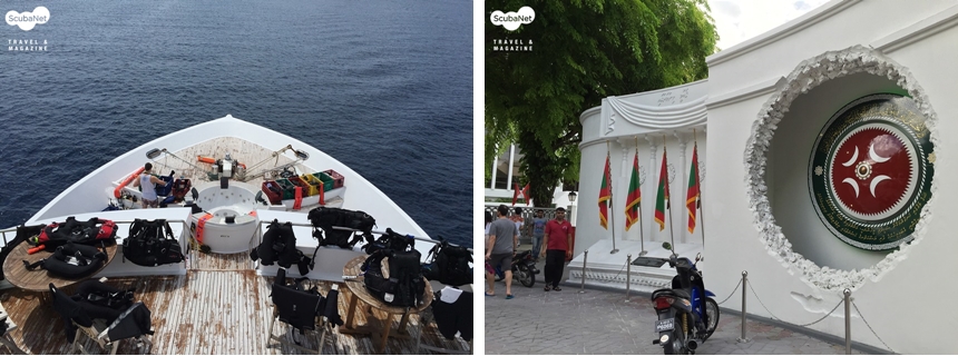 모든 다이빙이 끝나고 이제 말레 시내로 이동할 시간이었다. 말레로 이동하는 2~3시간 동안 스태프들은 다이버들의 장비를 세척하고 햇볕에 잘 널어 놓았다. 말레에 도착하여 시내 관광을 나섰다. 시내에 발을 내딛는 순간 느껴지는 것은 어마어마한 더위와 높은 습도였다. 배 위에 있을 때는 햇볕이 강해도 오히려 건조했고 시원한 에어컨이 나오는 실내가 있어 땀 흘릴 일이 없었는데 말레 시내를 다니면서는 조금만 움직여도 땀이 송골송골 맺혔다.