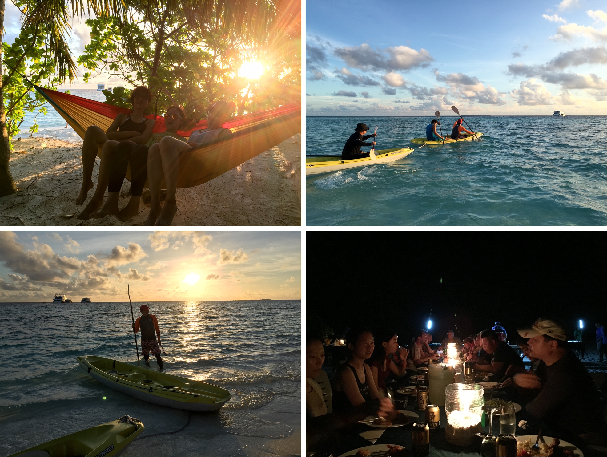 라디가 섬은 한 바퀴를 둘러보는 데에 10분도 걸리지 않을 정도의 작은 섬이다. 스노클링을 하고 카약킹을 하고 코코넛을 따기도 하고 단지 해먹에 누워 쉬기도 하며 보낸 오후 한 나절의 시간은 몰디브에서의 추억을 훨씬 풍성하게 했다. 아름다운 바닷속 세상만큼이나 아름다운 풍경이었다.