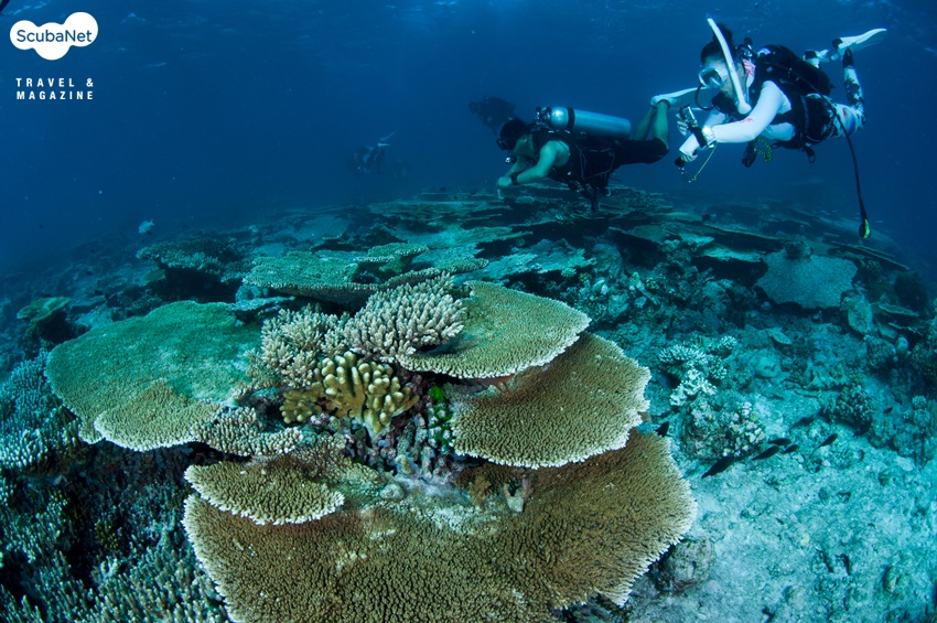 알리마타 야간 다이빙: 알리마타 서커스알리마타 야간 다이빙에 앞서 진행된 미야루 칸두에서의 다이빙은 다소 실망스러웠다. 조류 때가 맞지 않아 기대했던 상어 스쿨링이나 다른 대물을 만나지 못한 채 역조류만 열심히 차다 끝나버렸으니 말이다. 하지만 알리마타에서의 본격적인 다이빙은 밤에 펼쳐졌다.