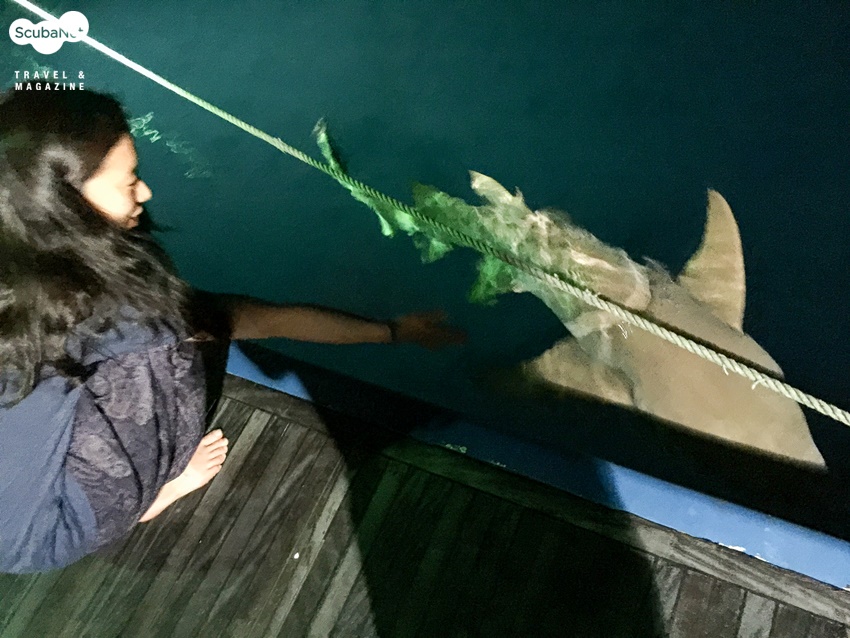 야간 다이빙이 끝난 후에도 배 후미에서 너스 상어를 볼 수 있다.