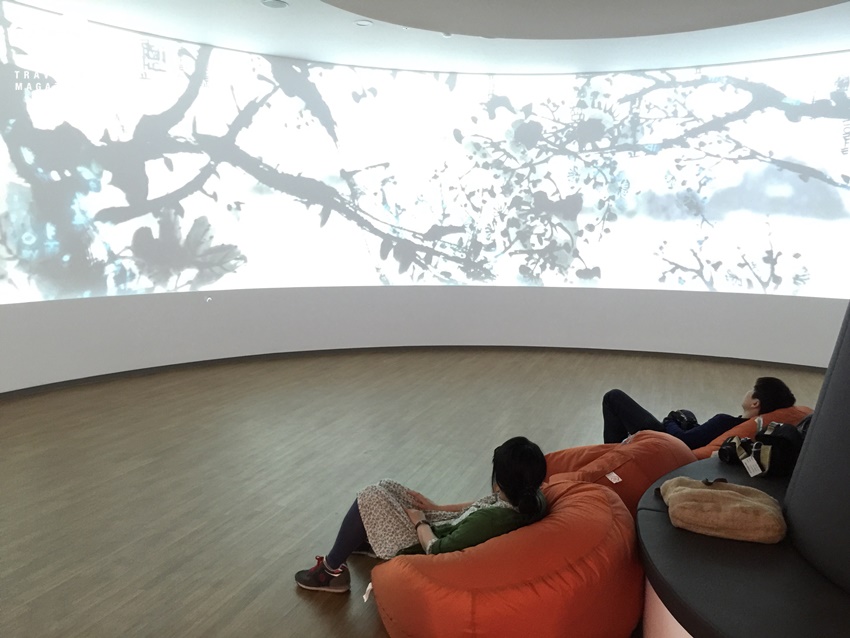 [고래와 한지의 만남] 이제 갓 개관한 한국전통문화전당은 깔끔하고 쾌적했지만 아직 찾는 사람이 적어 한산했다. 1층에는 전주를 소개하는 각종 전시가 있었는데 영상, 사진 등을 다채롭게 활용한 멋진 모습이었다. 엘리베이터를 타고 3층으로 올라가 고래를 찾았다. 입구를 장식한 커다란 고래 사진에 기대감이 물씬했다.
