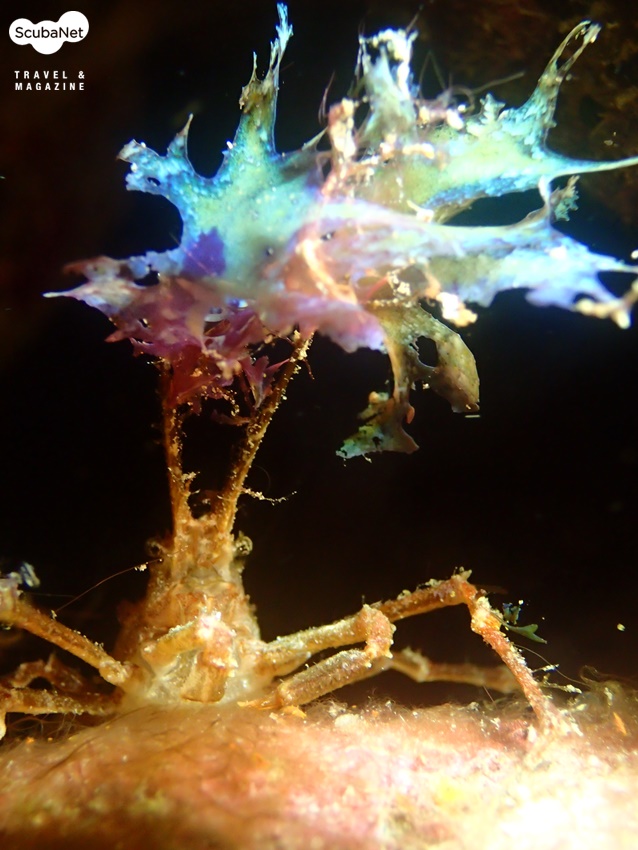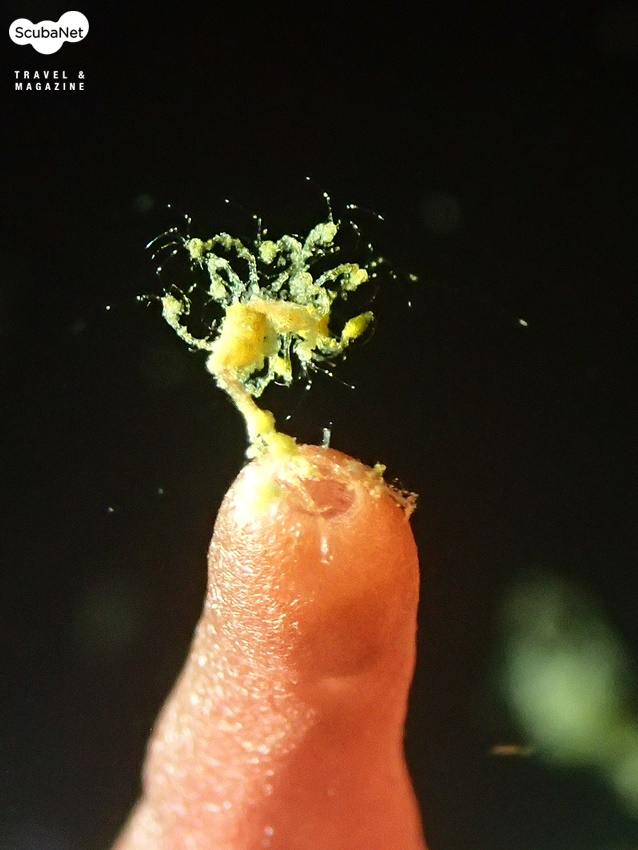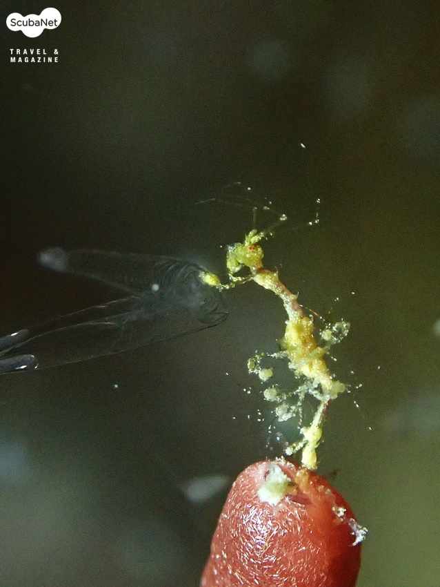 새우 유생을 사냥하는 스켈레톤 쉬림프, 앙올 포인트 수심 5~7m 부근에서 볼 수 있다