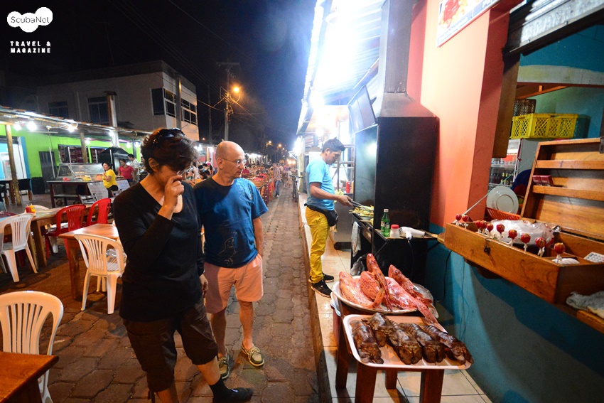 어그레서는 마지막 날 저녁을 다이버들이 알아서 해결하도록 하고 있다. 그래서 리브어보드 트립 전에 먼저 갈라파고스에 들어와 아요라에서 묵으며 데이트립으로 다이빙을 며칠 했던 일행들이 찾아놓은 노천 식당가에서 함께 식사를 했는데 11명이 푸짐하게 저녁을 먹고 맥주를 마셨는데도 1인당 10불 정도 밖에 나오지 않았다. 로컬들이 이용하는 식당가라고 하였는데 항구 바로 옆의 레스토랑과 비교하면 엄청나게 저렴한 가격이었다.