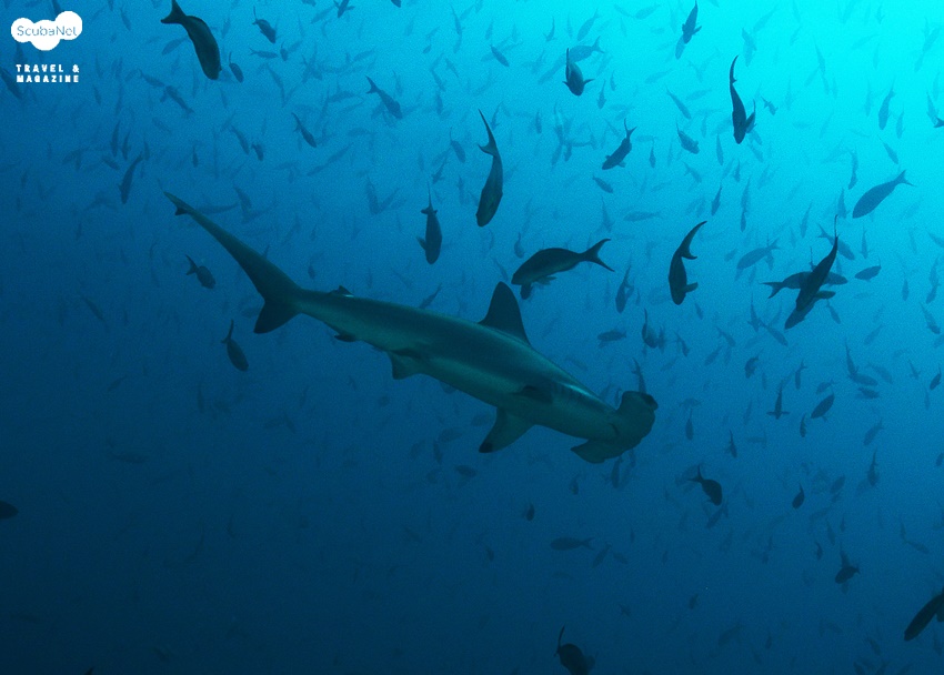 다윈 섬 다이빙갈라파고스 다이빙 투어의 하이라이트는 다윈 섬 다이빙이다. 다이빙은 모두 다윈 아치(Darwin Arch)에서 진행되었는데 조류를 직접 받는 곳이기 때문이다. 이번 항해에서는 7회 다이빙을 진행하였는데 다이버들이 보고 싶어했던 대물들을 대부분 볼 수 있었다. 우선 매 다이빙에서 햄머헤드 상어는 쉴 새 없이 지나다녔다. 물론 머리 위를 뒤덮을 정도로 많이 지나가는 햄머헤드 떼는 만나지를 못했지만 한두 마리의 햄머헤드 상어는 수시로 지나다녔고, 가끔은 10마리 이상의 헴머헤드 상어들이 무리지어 지나가기도 했다. 또한 자리를 잡고 앉아 있으면 가끔 헴머헤드 상어들이 머리 위로 가깝게 지나가기도 하여 광각렌즈의 화면을 꽉 채우기도 했다.