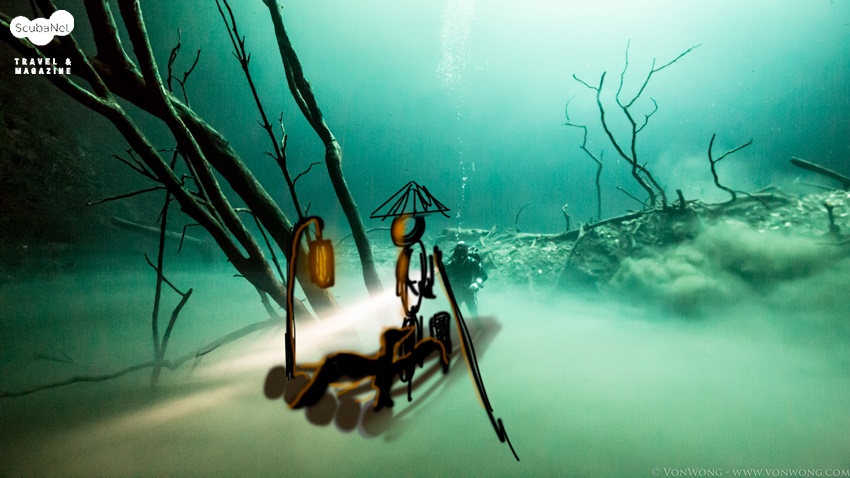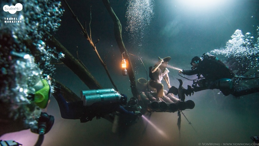 발렌타인과 벤자민 본웡의 수중강 프로젝트시노테 안젤리타 30m 수심에서 가마우지 어부를 촬영하다!